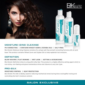 Elevate your haircare routine with the Bio-Kinetic Hydro Silk Bundle, designed for salon-quality results at home. Start with Pro Silk, a styling marvel that reduces mechanical stress during heat styling, ensuring your hair remains healthy while achieving flawless looks. This innovative formula controls moisture levels, preventing frizz and dryness for beautifully manageable hair. Enhance your regimen with the Hydro Pro treatment, which detangles effortlessly and protects against heat damage, smoothing split ends and flyaways. Finally, rejuvenate your locks with the Rejuvenate Treatment, enriched with Keratin and Panthenol to improve elasticity, manageability, and color retention. Experience the ultimate in hair care and styling with this luxurious bundle!
