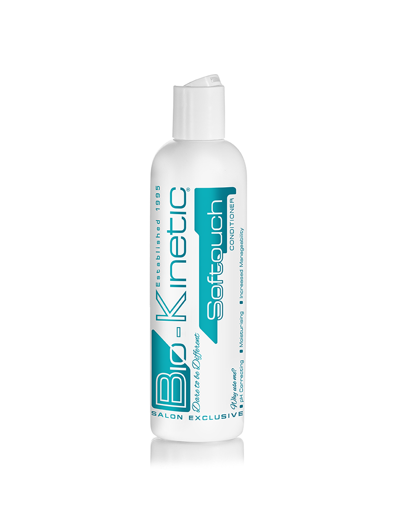 Bio-Kinetic Softouch Conditioner has been formulated as a protein and moisture enriching conditioner. The anti-oxidising and pH correcting formula will reduce the porosity of the hair which will extend colour retention. Softouch Conditioner will leave the hair feeling softer and more manageable. This product should be preceded by advised Bio-Kinetic cleanser.