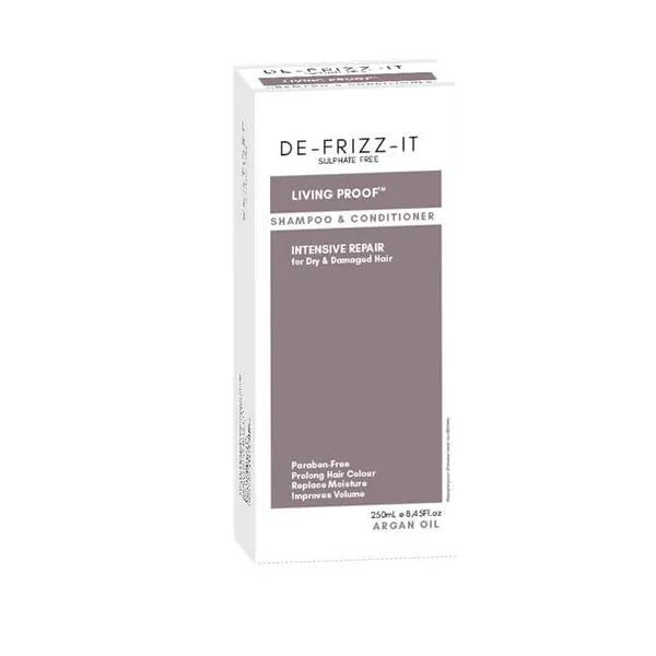 A box set containing the De-Frizz-It Shampoo and Conditioner treatment.