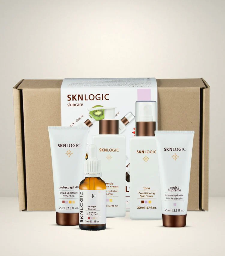 The Sknlogic Essentials Skin care kit contains a full regimen of what your skin needs the most. After you have been on the Skin care essentials range for 4 weeks you can add the advance regimen depending on your skin condition.